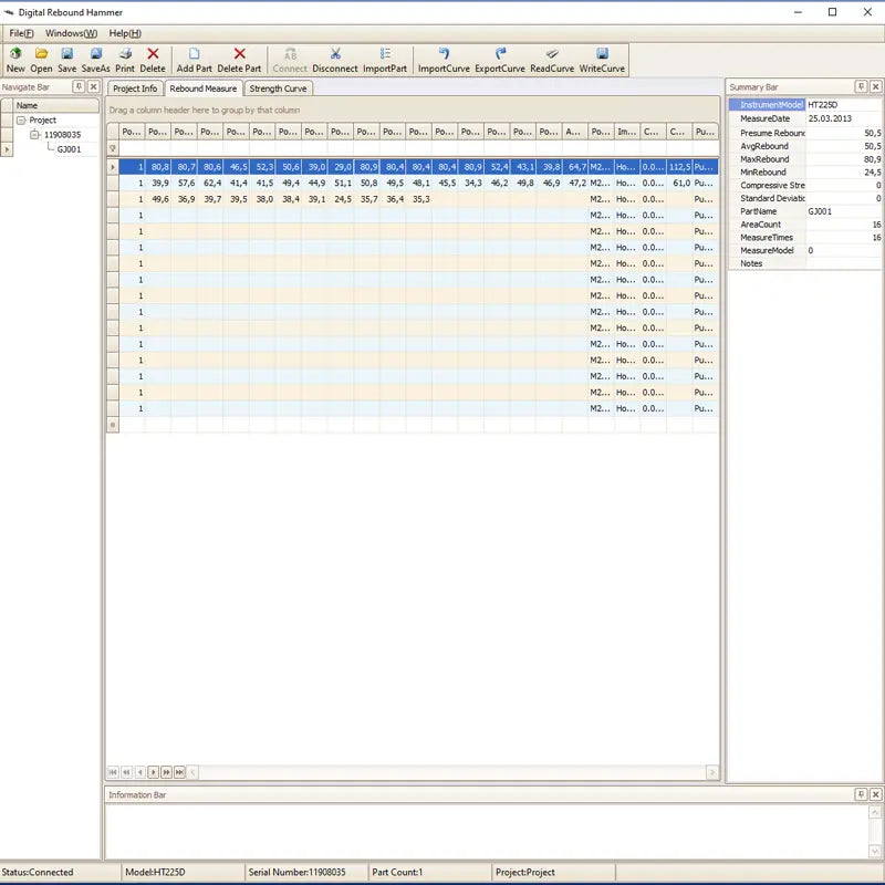 207 J for dependable evaluations following the Schmidt principle Versatile in functionality, it allows hardness measurements in multiple units such as PSI, MPa, kgF/cm², or N/mm² It also accommodates various test angles, including downward (-90° and -45°), horizontal (0°), and upward (45° and 90°) For added convenience, the device includes data storage for analysis purposes and features USB connectivity for seamless integration with a PC.
