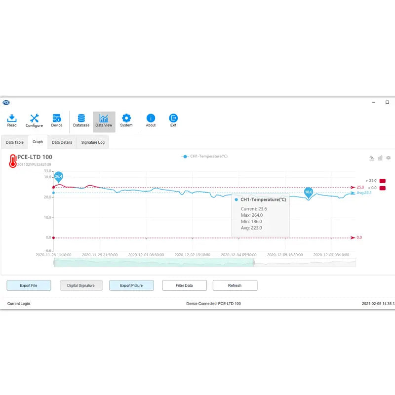 PCE-LTD 100 - Waterproof Thermometer, -80°C to +70°C, Data Storage & Analysis