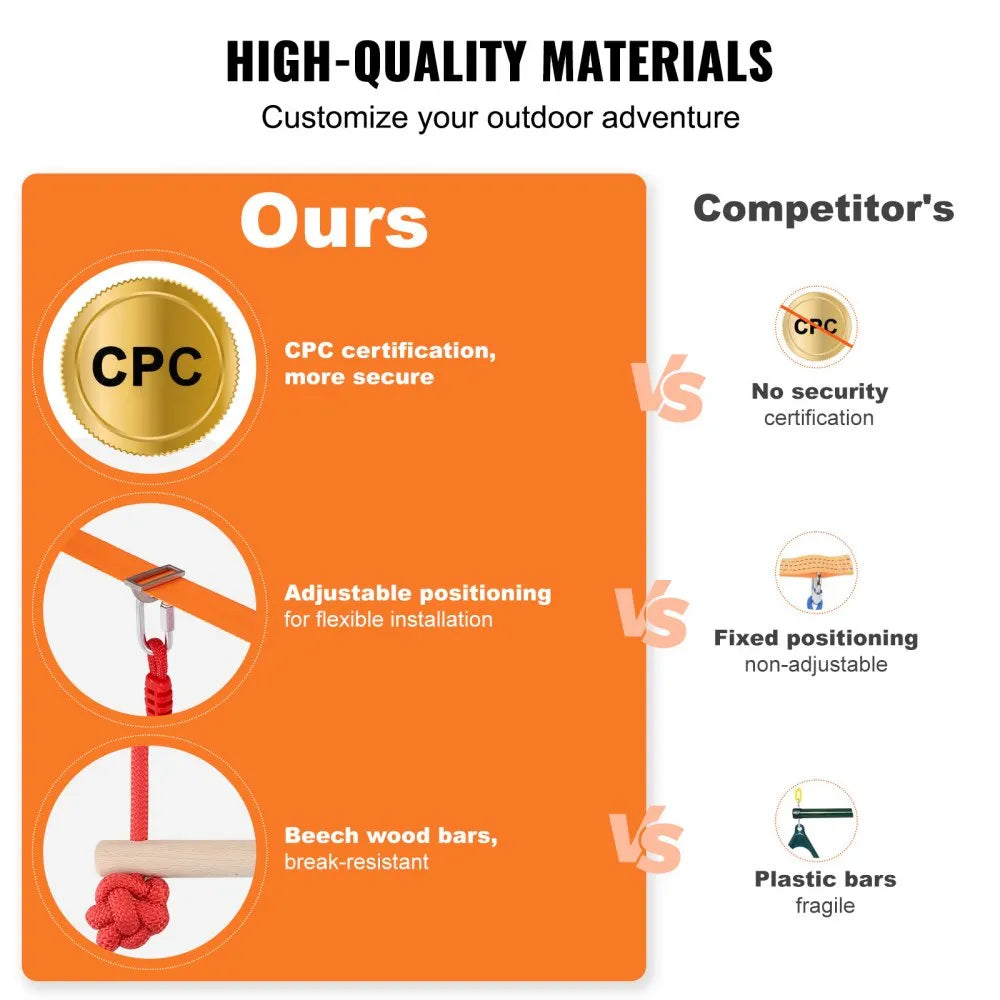 Transform outdoor fun with the VEVOR ninja warrior obstacle course, perfect for family bonding and physical activity This engaging setup is suitable for children of all ages, offering various configurations for inclusive play Constructed with sturdiness in mind, the course features 50-foot slacklines and supports weights of up to 500 pounds, ensuring a safe environment for kids Made from weather-resistant materials, it promises durability, making it an excellent addition to any backyard for outdoor enjoyment.