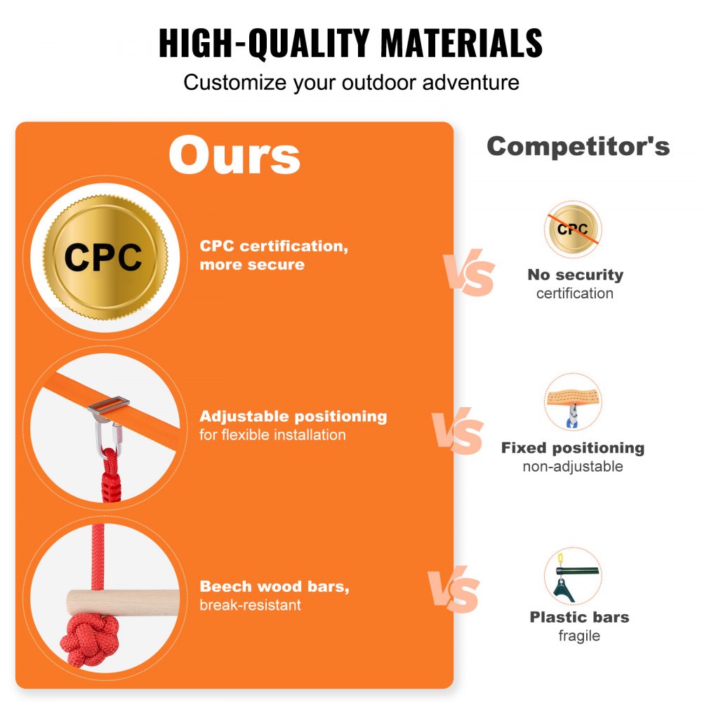 Introducing the VEVOR Ninja Warrior Obstacle Course, perfect for children aged 1 to 13, designed to provide endless fun and active engagement This versatile playset includes an array of exciting obstacles, including slacklines and monkey lines, catering to various skill levels for a customizable play experience Its adjustable features allow the course to evolve with your child's abilities, ensuring a long-lasting source of enjoyment.