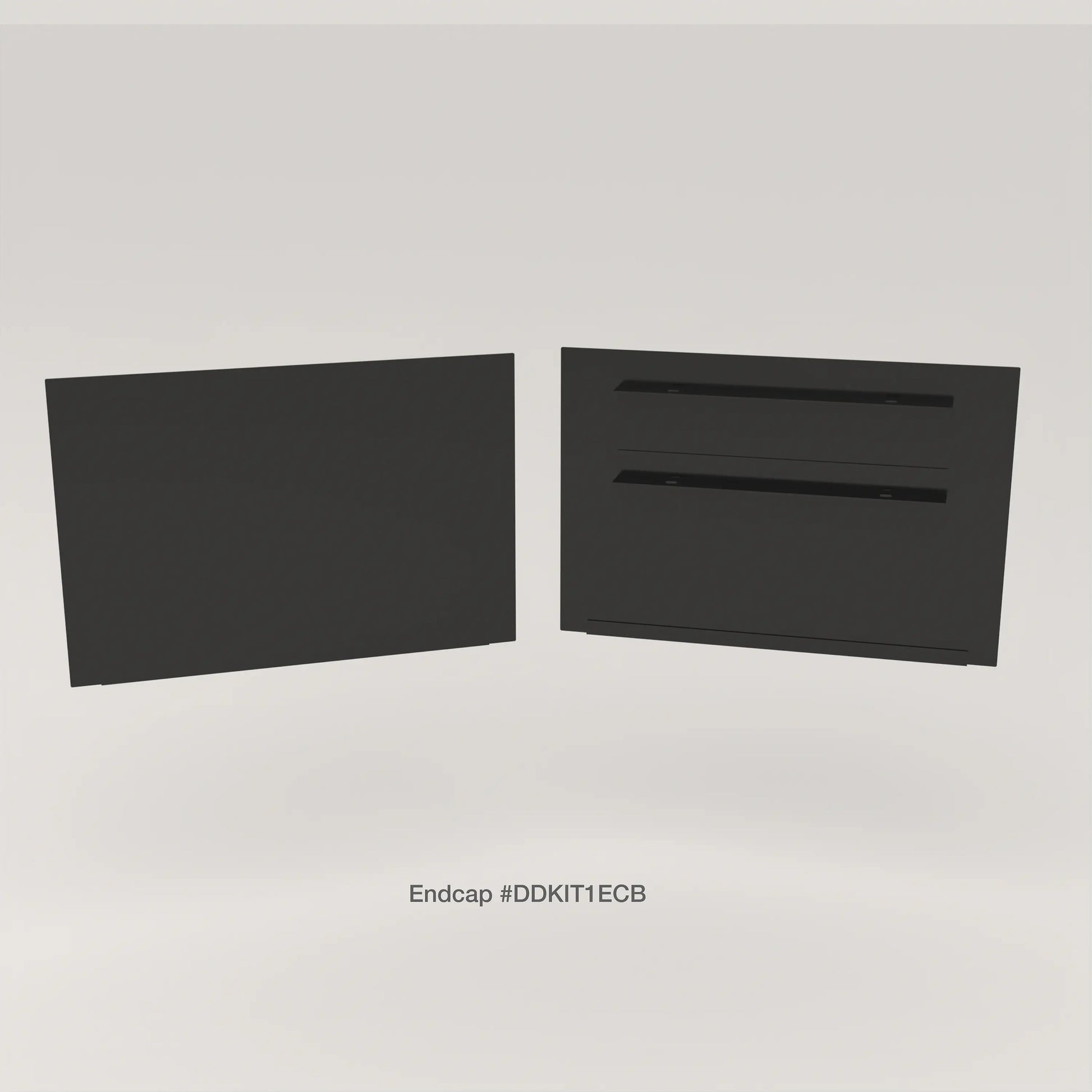 • The black finished end panel easily mounts to the base of the Glass Showcase Display Cabinet with Storage (DDKIT1B). Each showcase can use two end panels if needed, usually you only need them for the last showcase in a run of showcases. It works on either the left side or right side of the showcase.