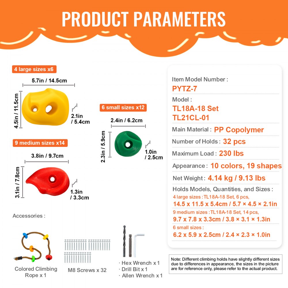 - PYTZ-6 - Durable 32-Piece VEVOR Climbing Holds for Kids, Indoor/Outdoor Fun
