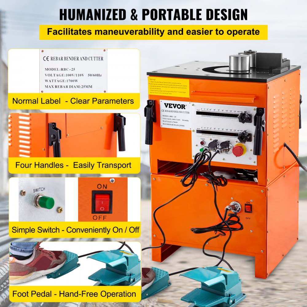 - RBC-25 - 1700W Electric Rebar Bender & Cutter for 1" Bending