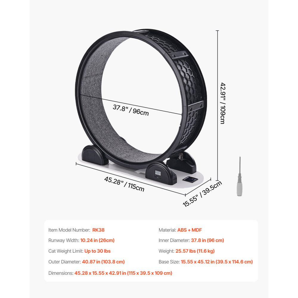 •Ideal for Most Breeds: With a spacious internal length of 37.8 in (960 mm) and a width of 10.24 in (260 mm), this cat running wheel is ideal for cats up to 30 lbs, including popular breeds like Maine Coons, British Shorthairs, and Siberians. Let your cat stretch out and unleash their energy in style!.