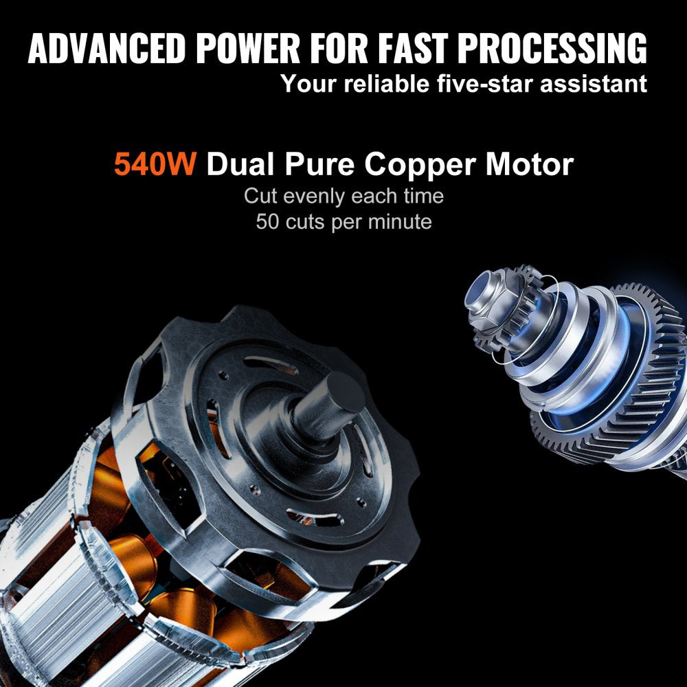 Experience effortless food preparation with the VEVOR automatic meat slicer Powered by a robust 540W dual motor and equipped with a 10-inch stainless steel blade that can be easily removed, this slicer offers adjustable thickness from 0 to 15mm Customize your slices for meats, cheeses, and breads to suit your culinary preferences Safety features such as a blade guard, emergency stop switch, and built-in sharpener ensure peace of mind during use, while its quiet operation makes it suitable for both home kitchens and commercial settings.