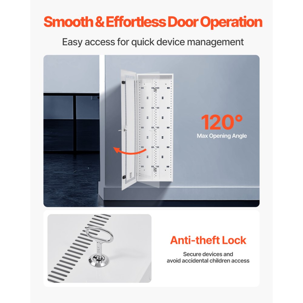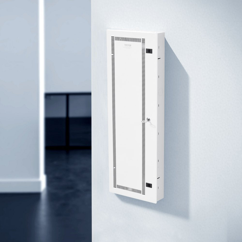 This enclosure is designed for versatile installation, particularly aligning with standard 16-inch stud spacing, making setup a breeze A convenient hinged door provides easy access and covers any rough edges, plus it features a key lock for added security against unauthorized entry.