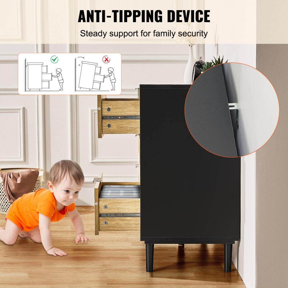 For added peace of mind, it features an anti-tip safety mechanism to maintain balance, while the metal drawer sliders ensure smooth, quiet operation for effortless accessibility.