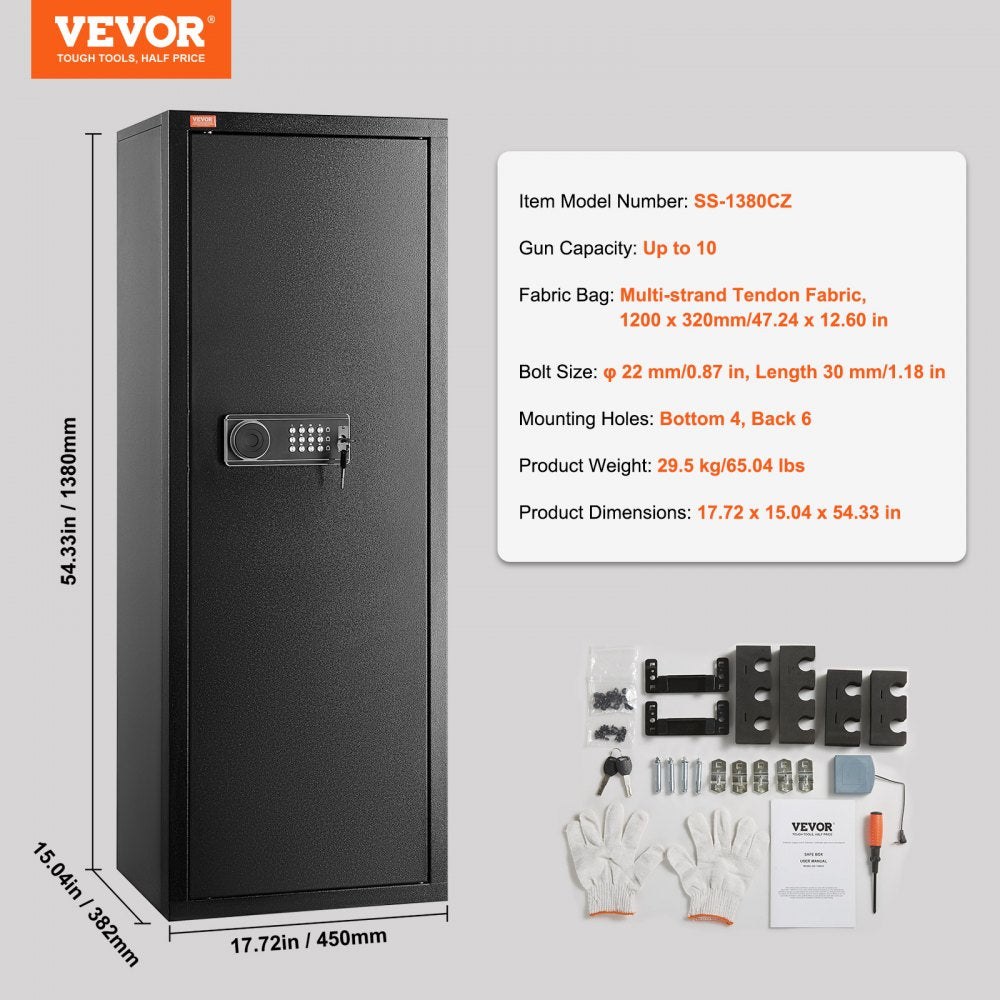 Enhance your firearm security with the VEVOR gun safe, a top-tier solution for firearm owners looking to safeguard their weapons and loved ones This robust cabinet holds between 8 to 10 rifles, featuring adjustable gun racks that offer versatile storage configurations to meet your needs The thoughtfully designed door panel includes three bullet cases, providing additional space for your ammunition