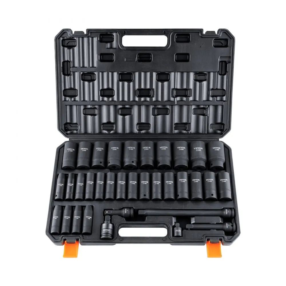 Upgrade your toolkit with the VEVOR 1/2-inch Drive Deep Impact Socket Set, featuring 34 metric sockets ranging from 8mm to 36mm This versatile set is perfect for a wide array of automotive repairs, designed specifically to handle deep-set nuts and bolts with ease By consolidating multiple socket sizes into one convenient set, you’ll save valuable time and effort when tackling repairs Crafted to withstand high torque applications, these sockets are built for the toughest jobs, ensuring durability and reliability in every task.