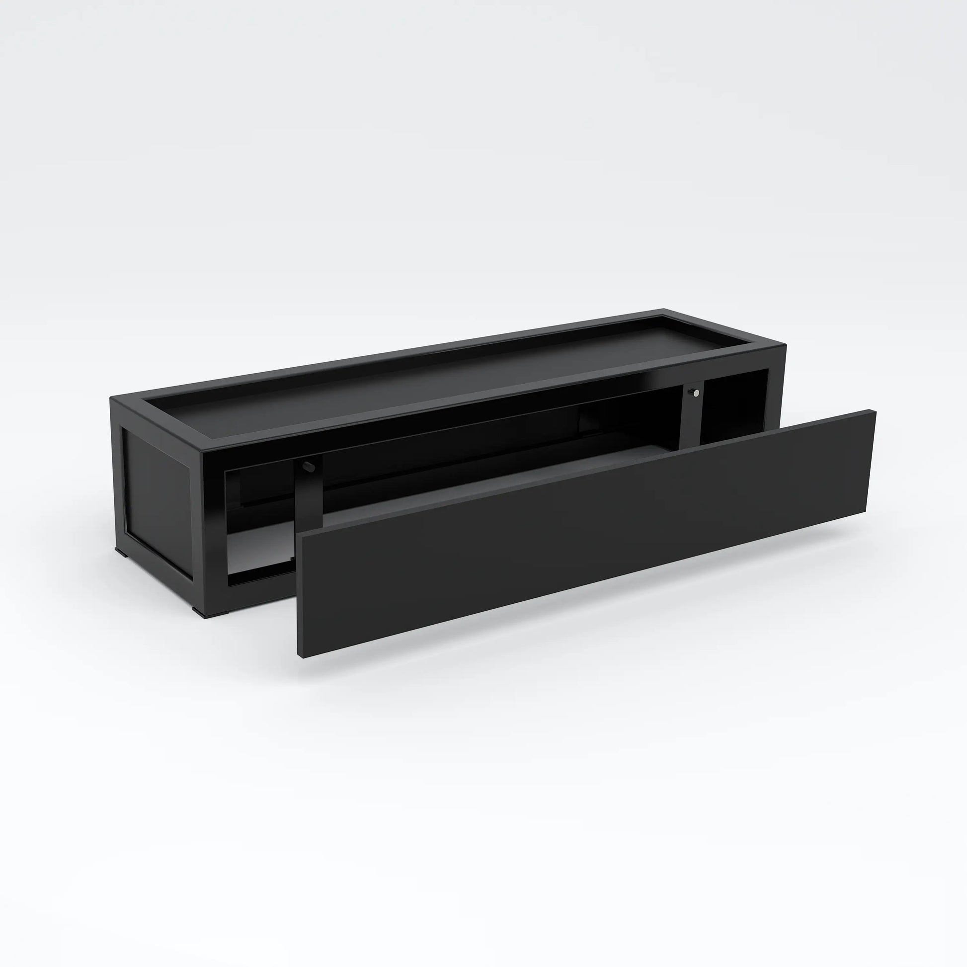 • Front panel is removable for you to easily customize with decals or silkscreened art work. Front panel is held in place with tiny magnets. Matte Black MDF panels are inset about 3/8”. The display riser measures 18” wide X 5” long x 4” high.
