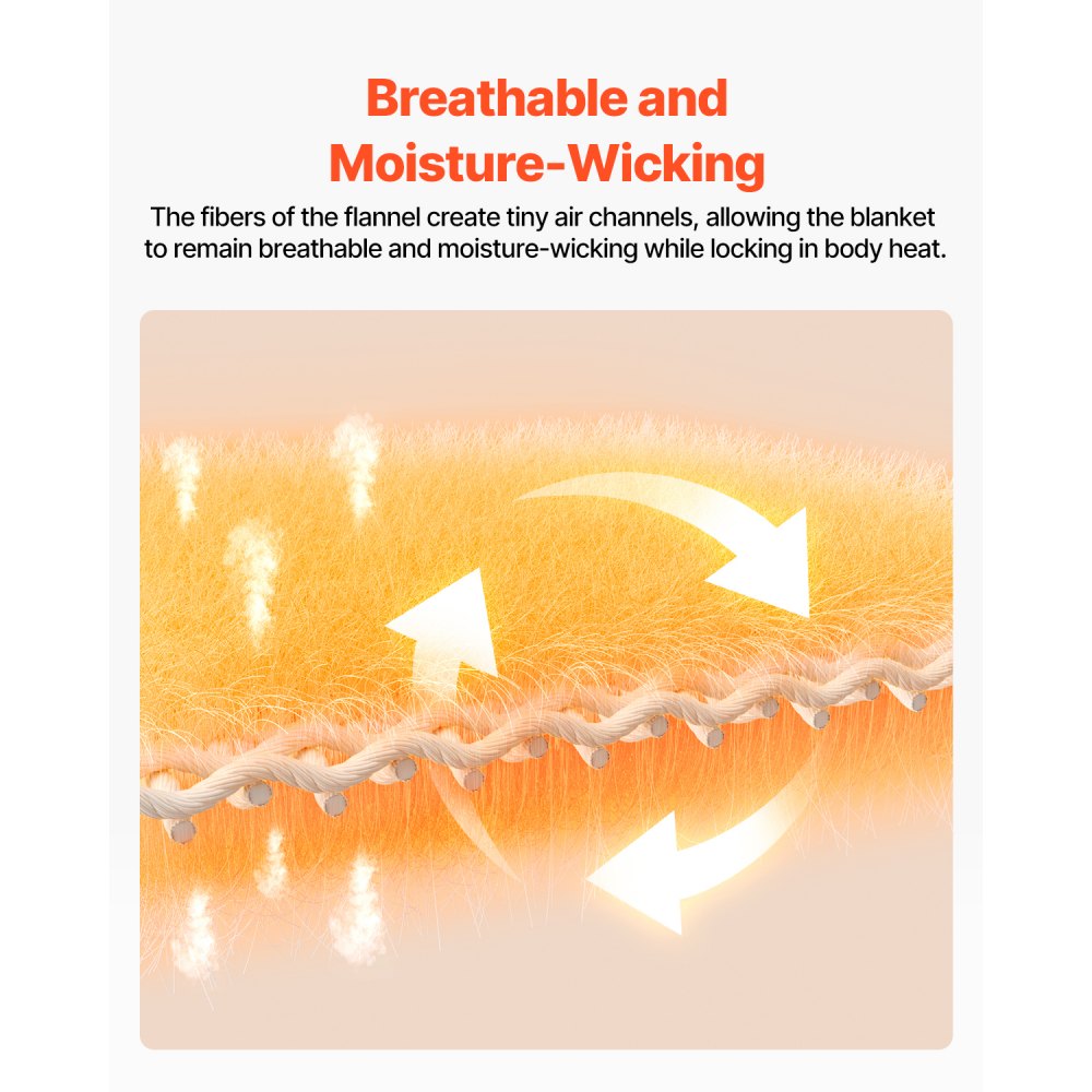 Indulge in cozy comfort with this queen size blanket, which measures 90 x 90 inches and is crafted from 100% polyester fiber for a luxuriously soft feel Designed with breathability in mind, it effectively absorbs moisture, ensuring a fresh sleeping environment while eliminating concerns about fading, deformation, shedding, or wrinkles after machine washing The double-sided flannel fabric provides warmth, while specially designed small breathable channels retain heat and ward off chilly air, promoting restful sleep.