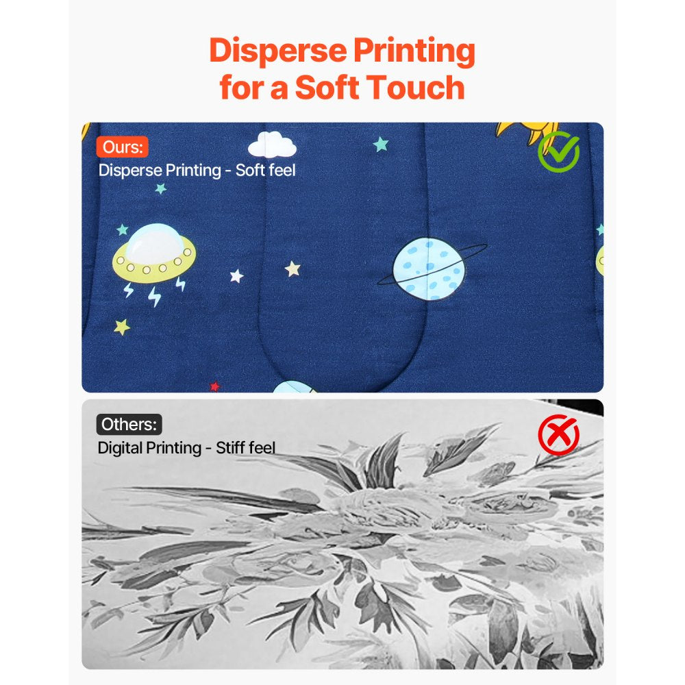 Advanced printing techniques keep the colors bright and cheerful, adding a delightful touch to any child's room The reversible design presents two stylish options: one side boasts a dark blue starry sky, while the flip side showcases a whimsical white starry sky adorned with playful space motifs This versatile comforter set is a fantastic choice for any child, enhancing room decor and creating a playful yet cozy atmosphere where they can truly thrive.
