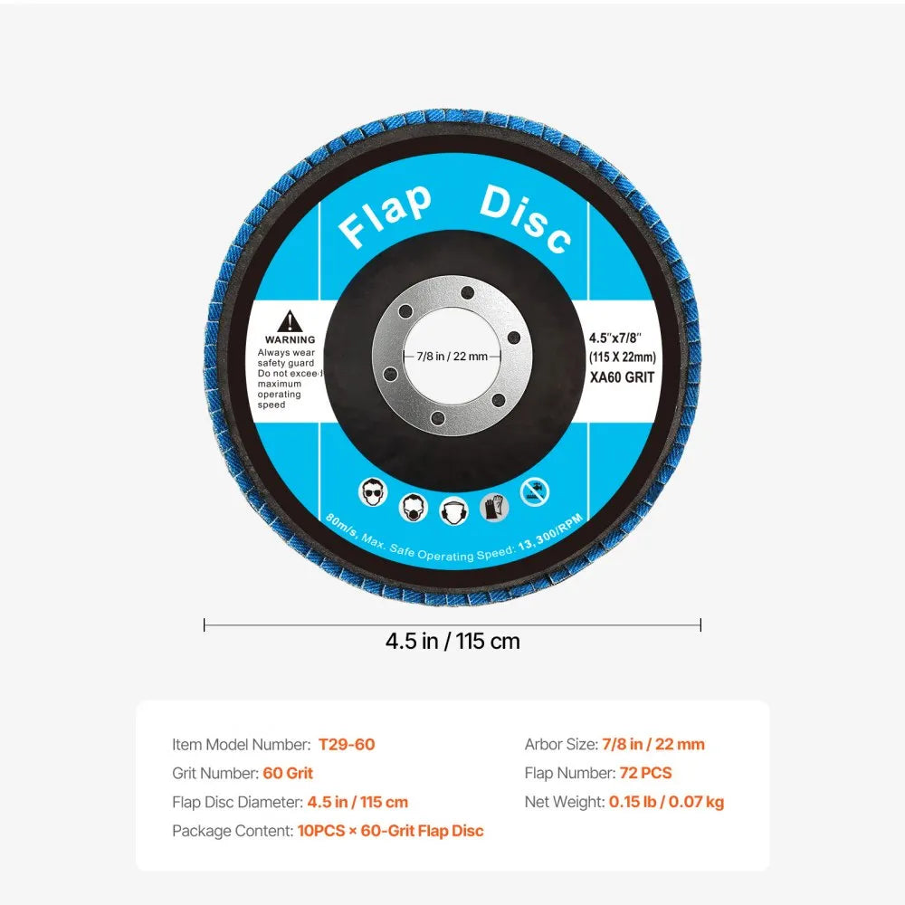 - T29-60 - 4.5" Zirconia Flap Discs, 60 Grit, 10 Pack for Angle Grinder