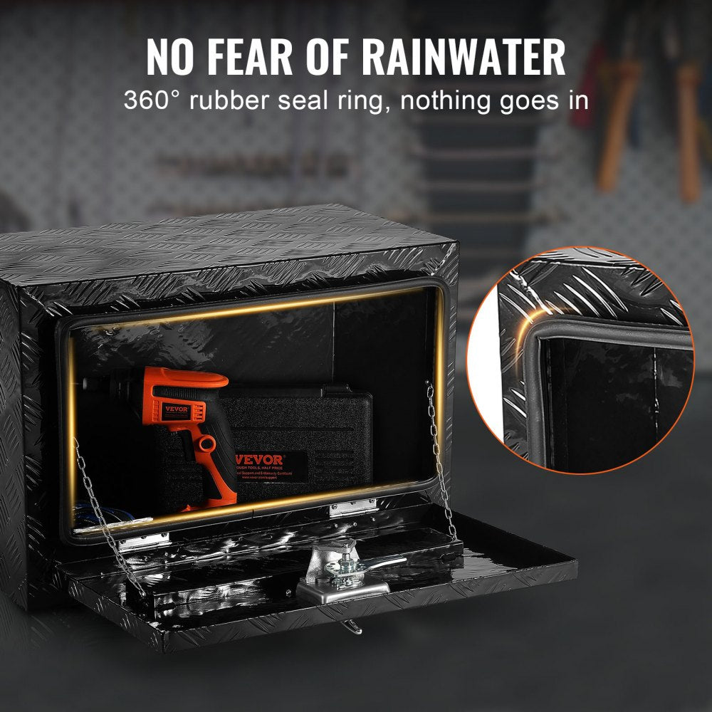 Enhance your storage solutions with the VEVOR underbody toolbox! This practical addition to your truck, trailer, or larger vehicle creates ample space for all your essentials, from tools for maintenance to camping gear Crafted from robust aluminum alloy, it features a scratch-resistant surface for added durability, ensuring it stands the test of time The toolbox is designed with a 360° rubber sealing strip, effectively protecting your items from moisture while preventing rust and corrosion.