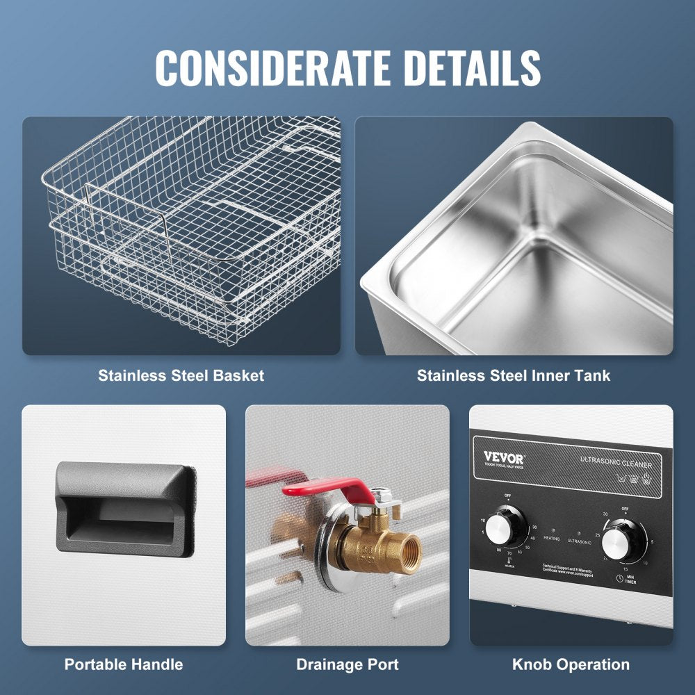 - TH-100AXN - 30L VEVOR Ultrasonic Cleaner with Timer and Heater
