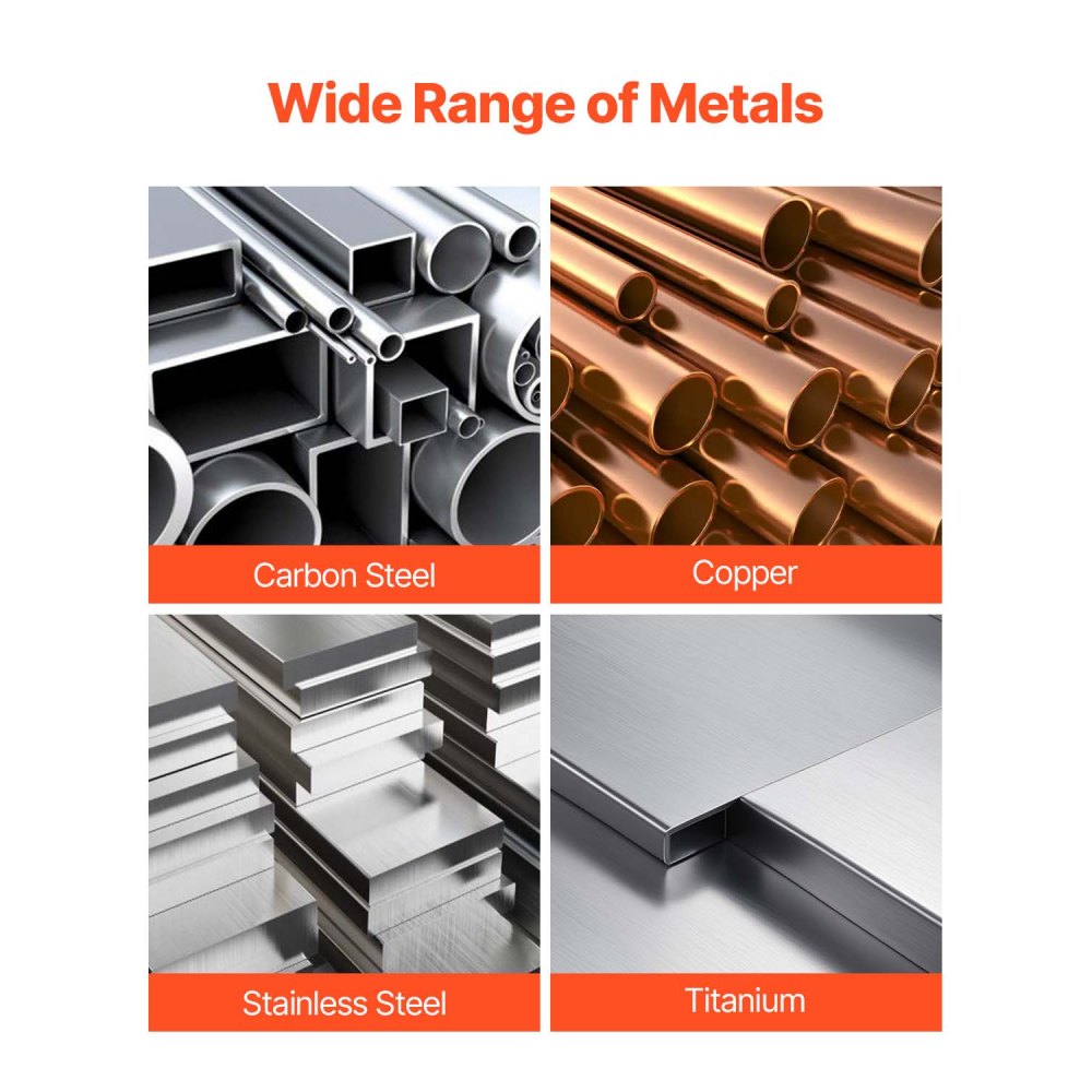 It is capable of welding various materials including carbon steel, copper, stainless steel, and titanium, and is compatible with E7018 and E6013 electrodes