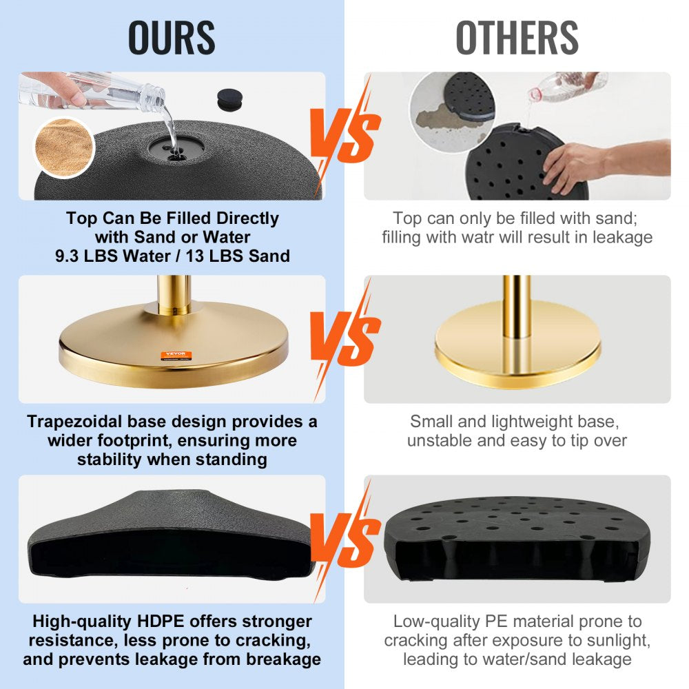 •Widened bases can be filled with water or sand before use, enhancing stability and preventing sliding or tipping..