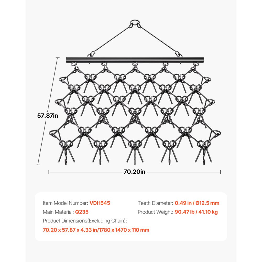 - VDH545 - Heavy-Duty 70in Chain Harrow Rake for Efficient Soil Leveling