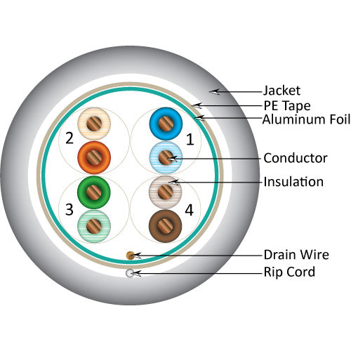 • Vertical Cable 057-480/S/P/GY 24/8C Solid BC CU CAT5E Shielded F/UTP Plenum Rated (CMP) Cable 1000ft Gray.