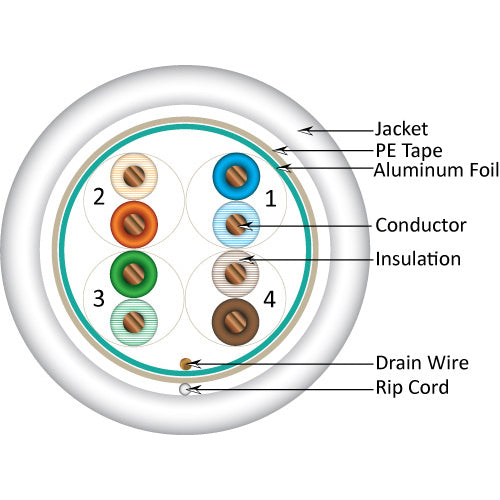 • Vertical Cable 057-487/S/WH 24/25P Solid BC CU CAT5E STP CMR Rated PVC Jacket Cable 1000ft White.