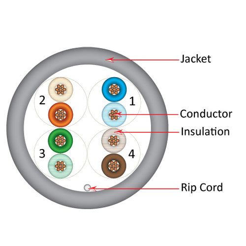 • Vertical Cable 058-479/ST/GY 24/8C Stranded BC CU CAT5E UTP PVC Jacket Pull Box 1000ft Gray.