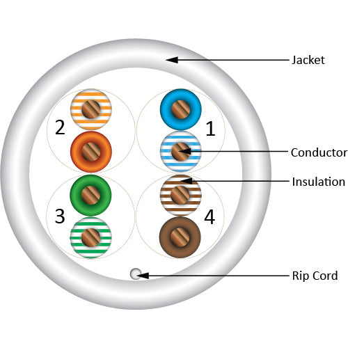 • Vertical Cable 059-484/CMX/WH 24/8C CAT5E CMX Solid Bare Copper Outdoor UV Rated 1000ft Pull Box White.
