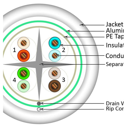 • Vertical Cable 062-509/S/WH 23/8C CAT6 F/UTP Shielded Solid Bare Copper 1000ft White.
