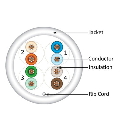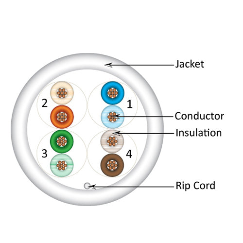 • Vertical Cable 063-517/ST/WH 24/8C CAT6 UTP Stranded Bare Copper 1000ft Pull Box White.