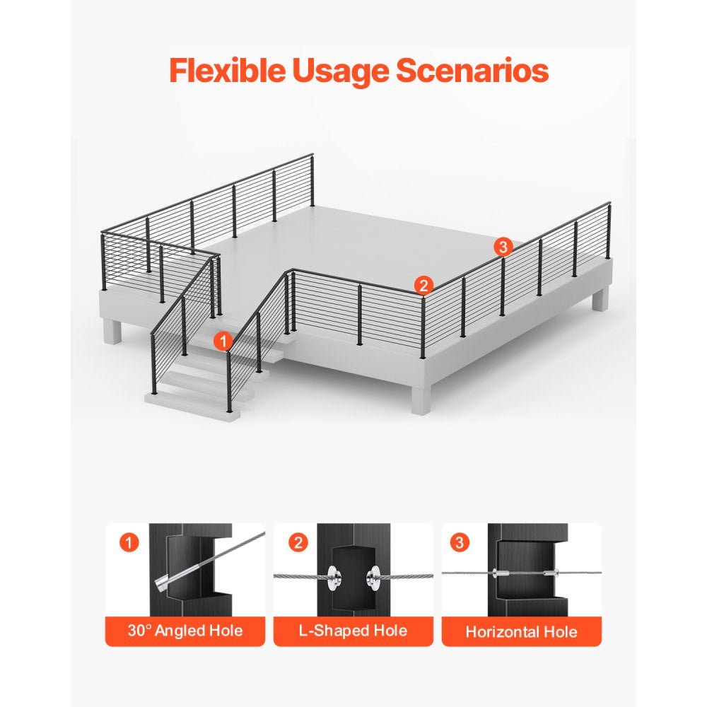 Perfect for both indoor and outdoor settings, these cable railing posts are ideal for decks, stairs, porches, fences, patios, balconies, gardens, and a range of residential and commercial buildings, enhancing safety without compromising style Experience straightforward installation and robust design with this comprehensive railing solution!.