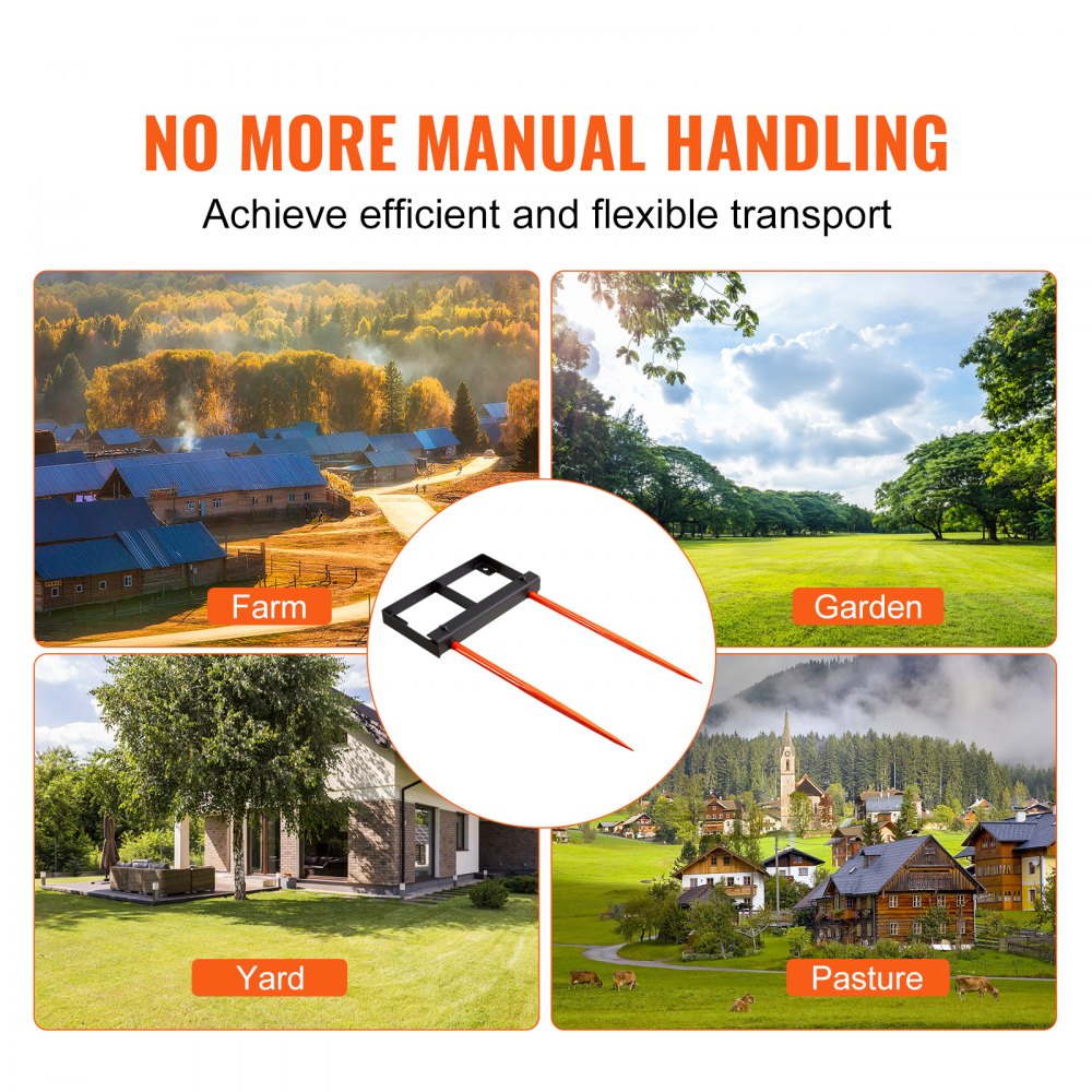 - WBS-016 - 49" Heavy-Duty Hay Spear with 3000lbs Capacity for Tractors