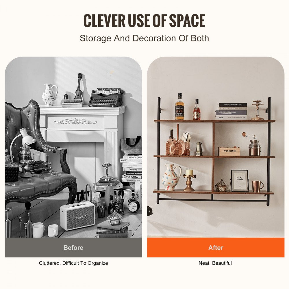 - WPSR-XM008 - Durable 3-Tier Metal Pipe Shelf, 24x7.87in, Wall-Mounted