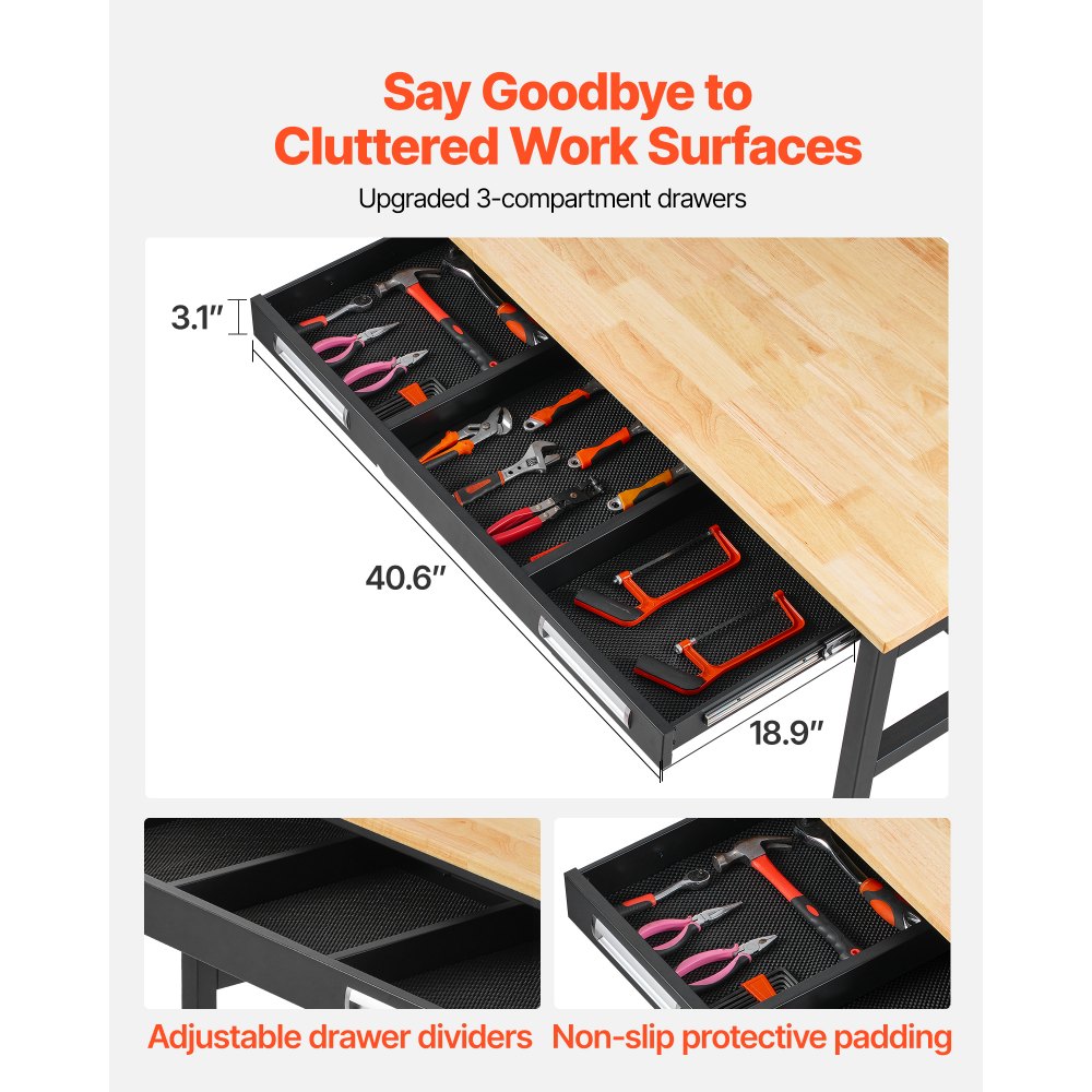 Constructed with a high-quality steel frame that's 13 mm thick, this workbench delivers exceptional stability and long-lasting performance, while remaining resistant to rust and corrosion Its versatile design fits perfectly in any setting—whether it's your workshop, garage, office, or kitchen Whether you’re tackling heavy loads or intricate tasks, this multifunctional workbench provides the sturdy support you need.