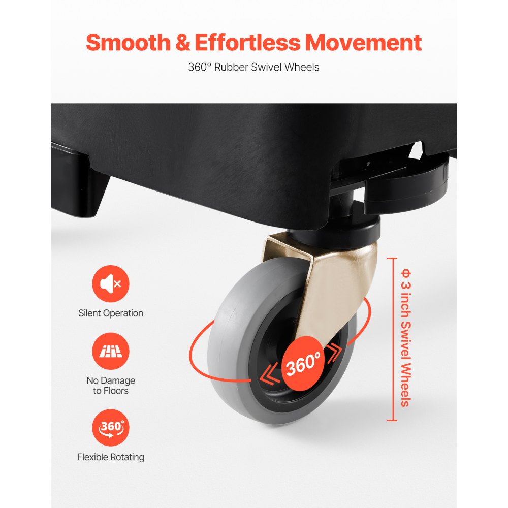 Enhance your waste management efficiency with this compatible dolly designed for 16 and 23-gallon as well as slim trash bins This innovative solution minimizes the effort needed for transporting waste by allowing for easy movement of multiple bins through its foot pedal release function Its durable 3” swivel wheels facilitate quiet and scratch-free navigation, making it perfect for varied environments.