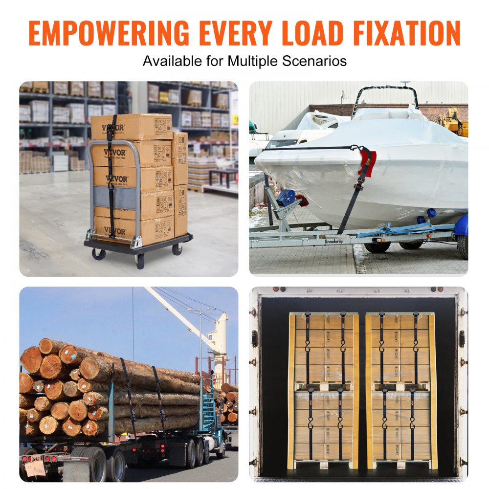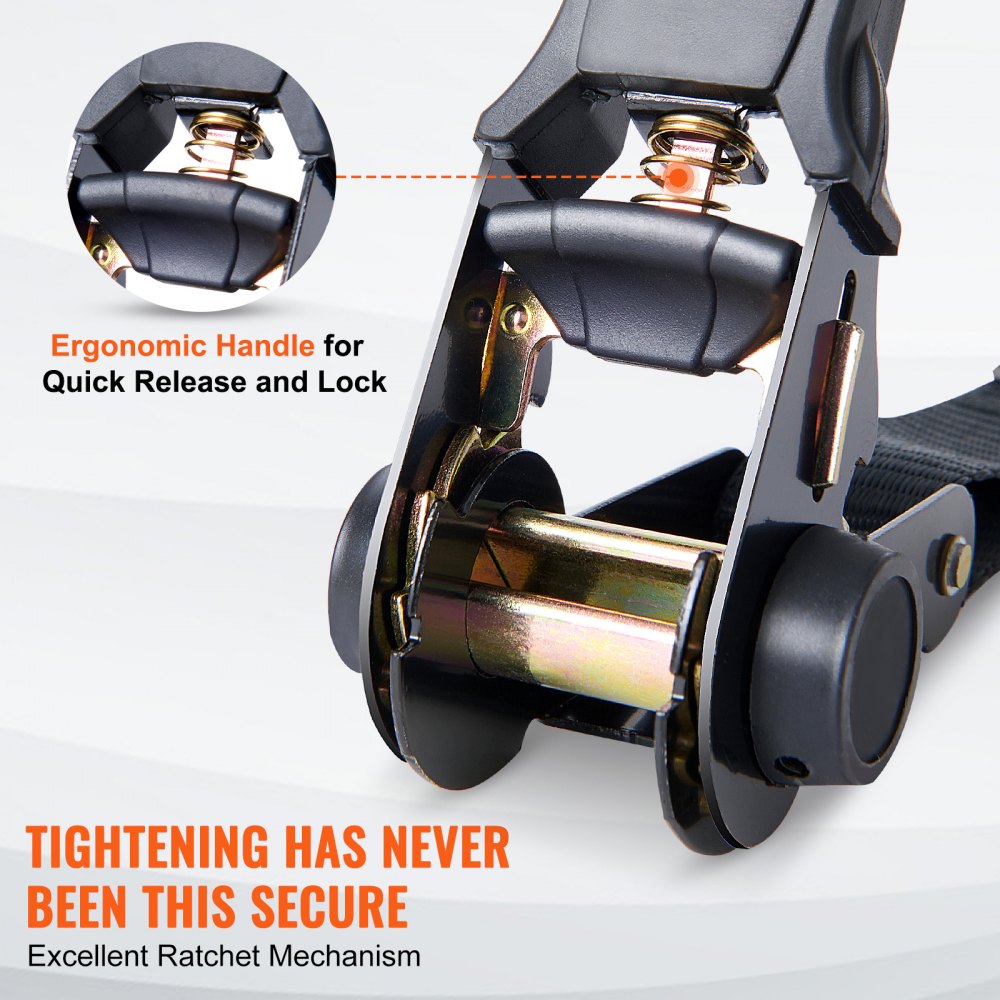 Secure your cargo with confidence using VEVOR ratchet tie-down straps, designed to provide a remarkable 2200 lb break strength for reliable transport Crafted from robust polyester webbing, these straps measure 1 inch in width and extend 15 feet in length, offering ample space and durability for various securing needs Whether you're hauling appliances or organizing lawn equipment, these straps can manage the weight efficiently.
