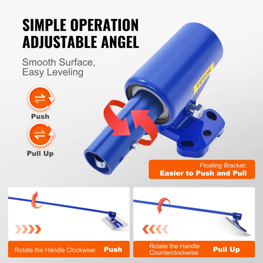 •Adjustable & Flexible: The bull float bracket allows for angle adjustment, providing excellent flexibility in pushing or pulling the handle to achieve a smooth finish..