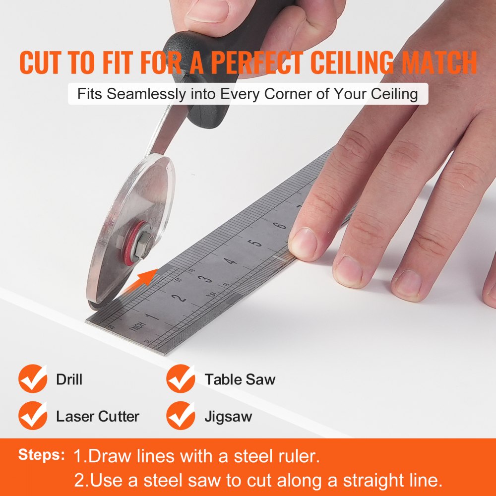 •Customizable Cutting: Easily cut tiles with a table saw, jigsaw, drill, or laser cutter to fit any corner of your ceiling..