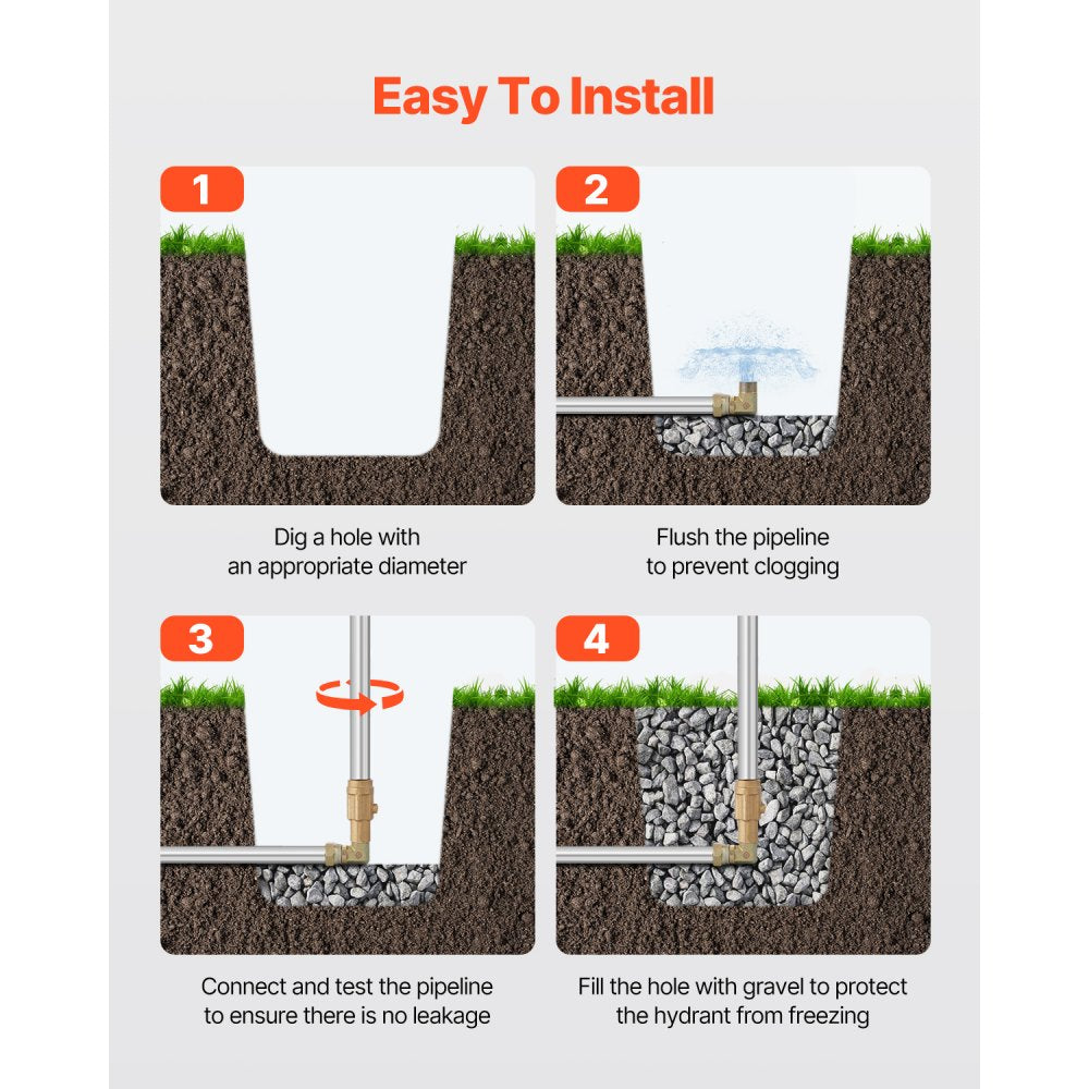 Ensure your outdoor watering needs are met efficiently with our 325FT frost-proof yard hydrant, built with a 12-inch bury depth for optimal performance in cold weather This hydrant is perfect for irrigating crops or nurturing your garden, delivering a reliable flow of water, even when temperatures drop Featuring a dual-valve system, it effectively manages frost and prevents water from accumulating, significantly reducing the risk of freezing.