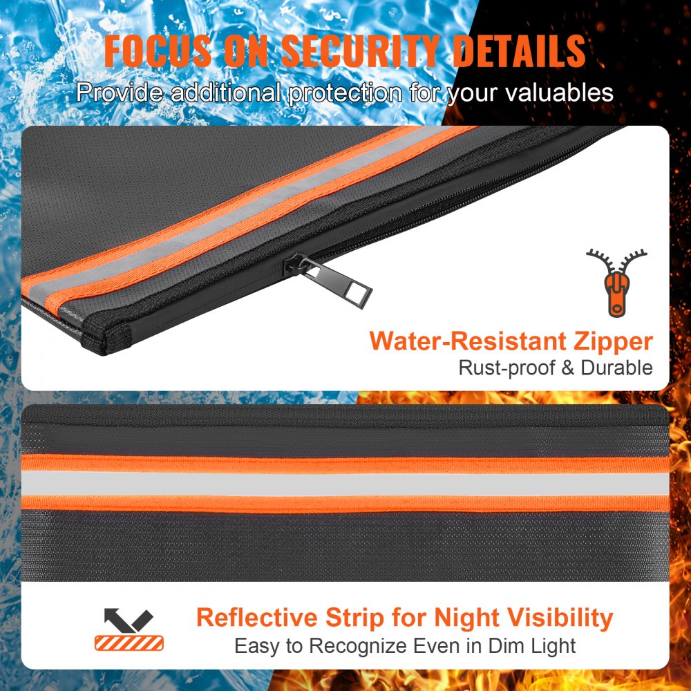 Protect your essential documents with the VEVOR fireproof document bag, which can endure temperatures soaring up to 2000°F Constructed with a double-layer fiberglass and a silicone coating that’s comfortable to handle, this bag is both fireproof and resistant to water The silicone coating effectively blocks heat and air, while its water-resistant surface keeps your valuables safe from moisture Measuring 13.