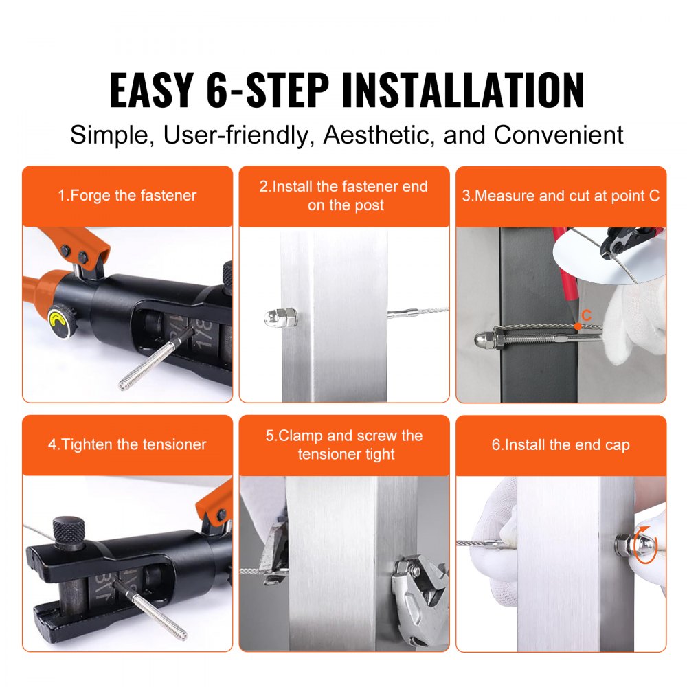 Introducing the VEVOR 51 Pack Cable Railing Kit, expertly crafted for smooth installation of 1/8" steel cables This kit is compatible with both wooden and metal posts sized at 1x2 inches, making it a versatile choice for deck railings, staircases, and other projects Made from T316 stainless steel, these fittings are built to withstand the elements, providing exceptional durability and resistance to corrosion for both indoor and outdoor use.