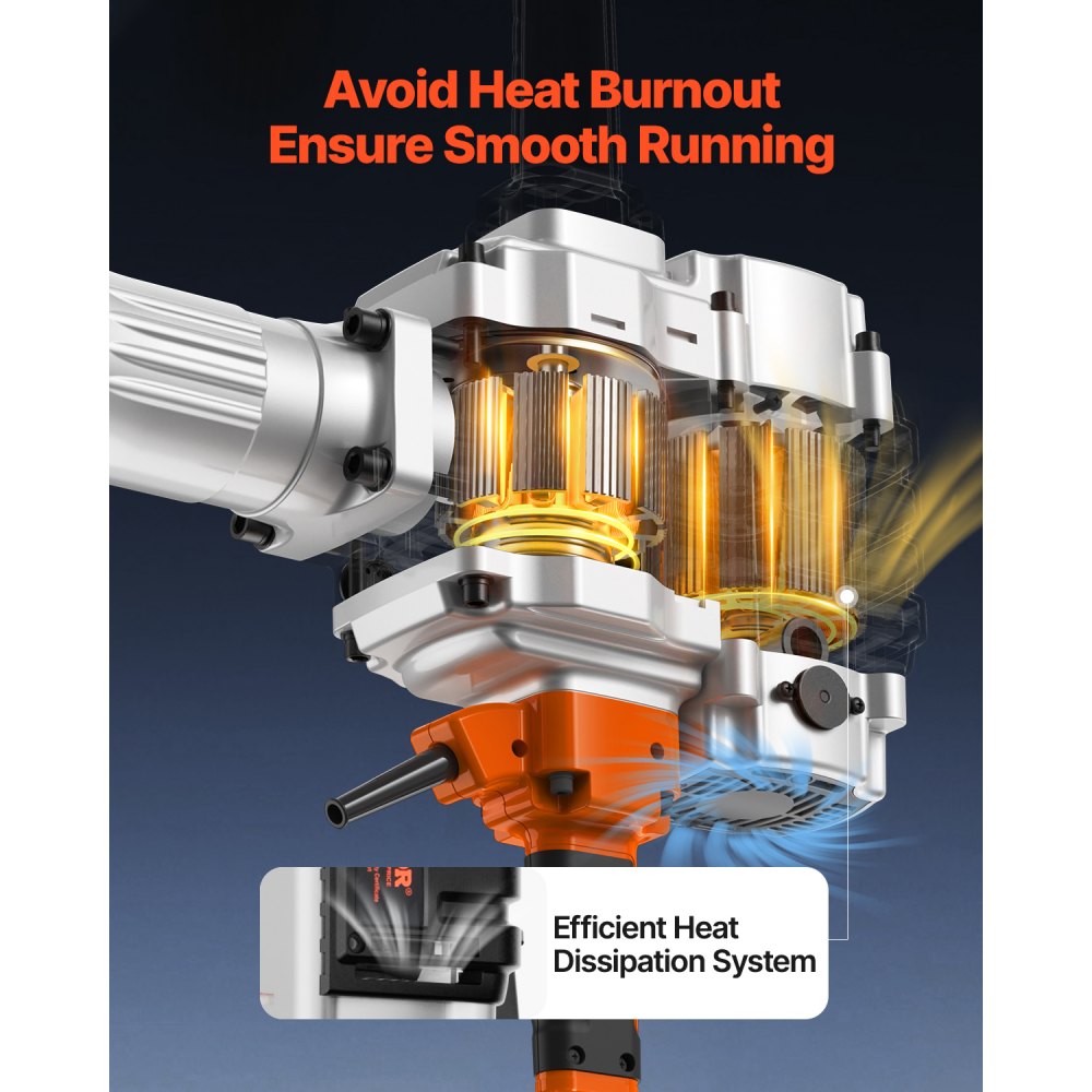 •Outstanding Industrial Performance: Equipped with a powerful 2100W motor and delivering up to 1650 BPM impact frequency, our industrial-grade demolition jack hammer effortlessly breaks through tough materials like concrete, brick, and stone..