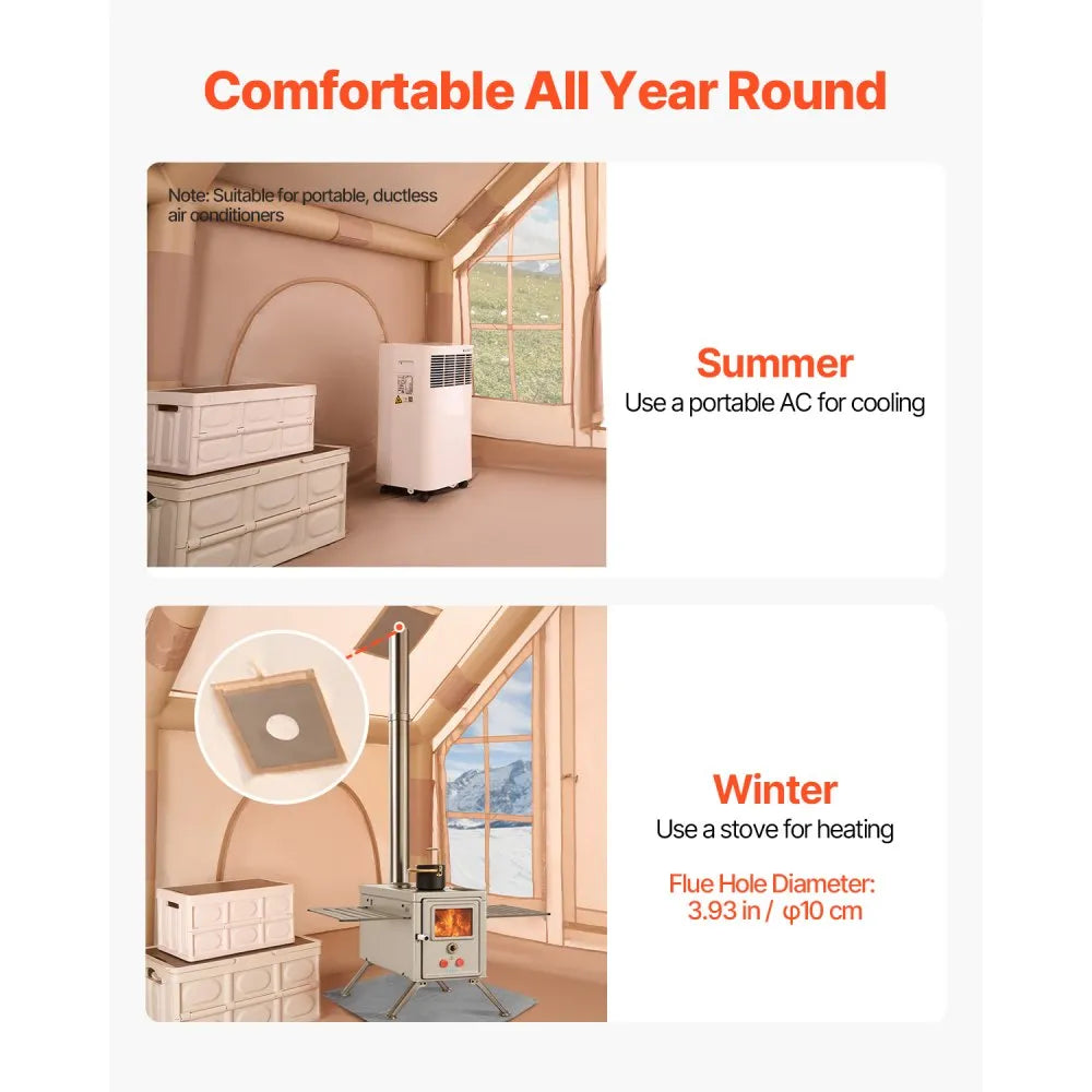Experience the great outdoors with the spacious glamping tent, featuring an impressive 97 sqft area ideal for gatherings with friends or family This inflatable tent creates a cozy, private space whether you’re camping or simply enjoying time with loved ones Setting it up is a breeze; thanks to the included high-pressure pump, you can inflate it in just 10-15 minutes without the hassle of traditional poles.